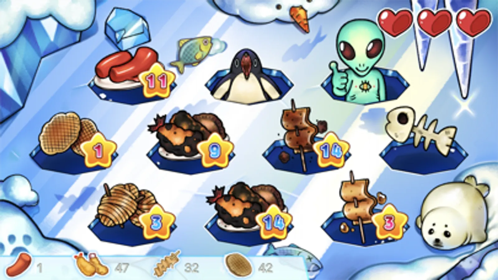 Select the food to cook and sell. Take a rest when HP is not enough.