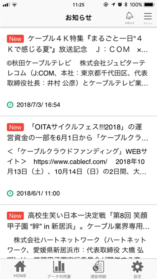 ・ケーブルテレビ局の発信するお知らせをアプリ上で見ることができます。