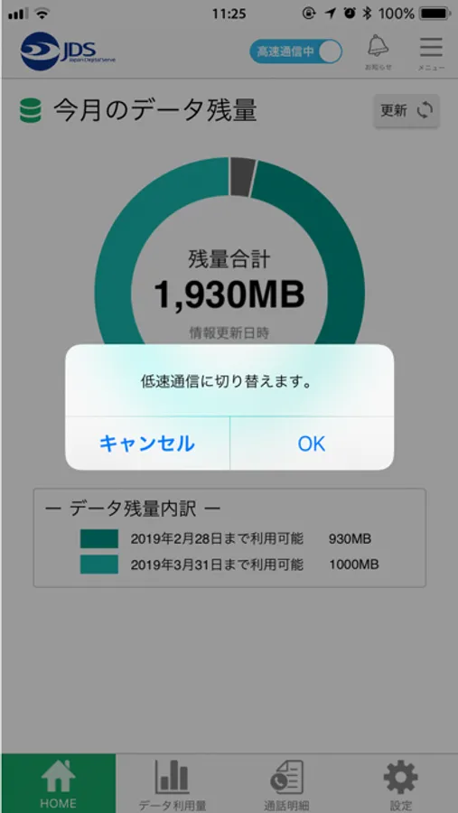 ・データ残量を節約するための通信速度切り替えも簡単にできます。