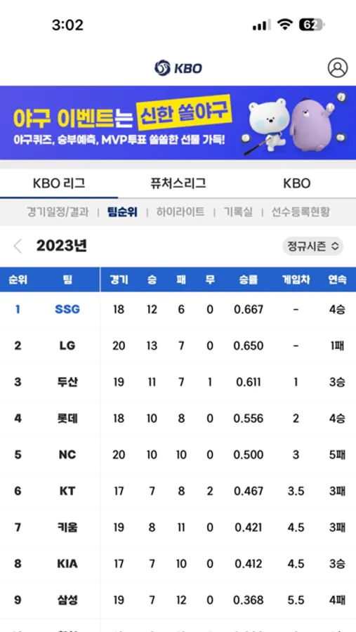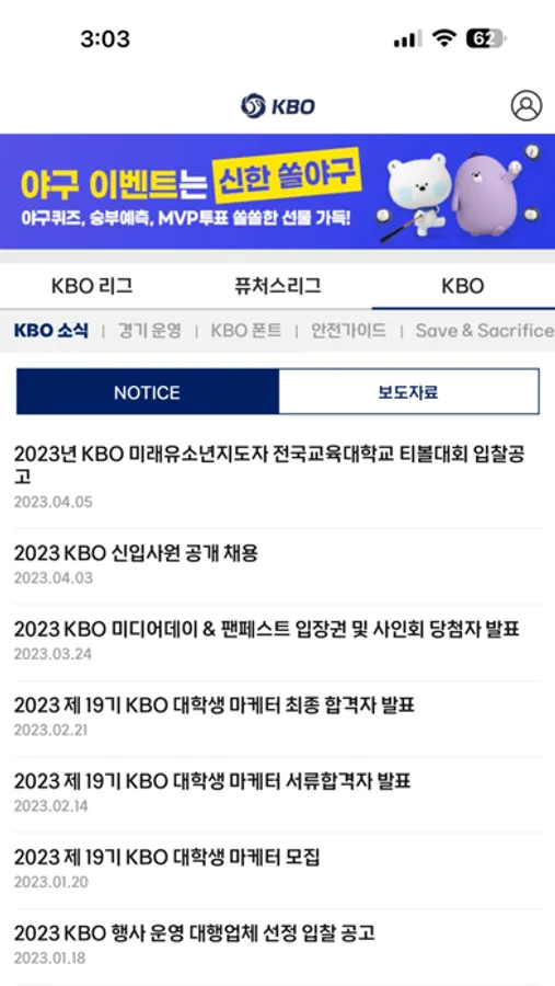 한국프로야구 공식 앱 KBO
