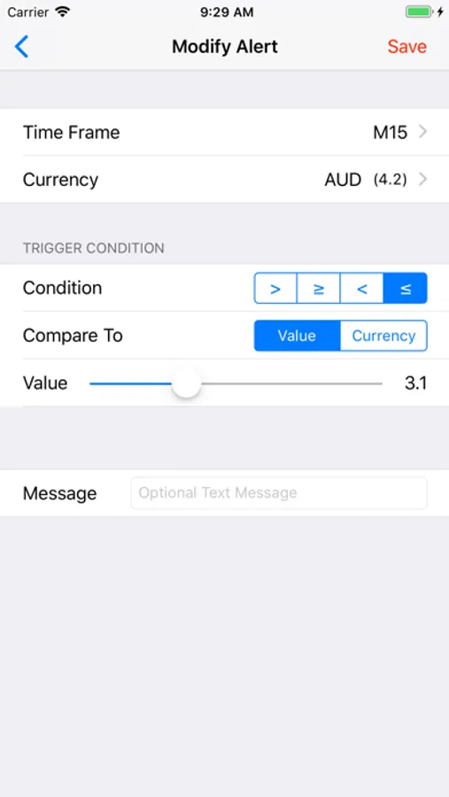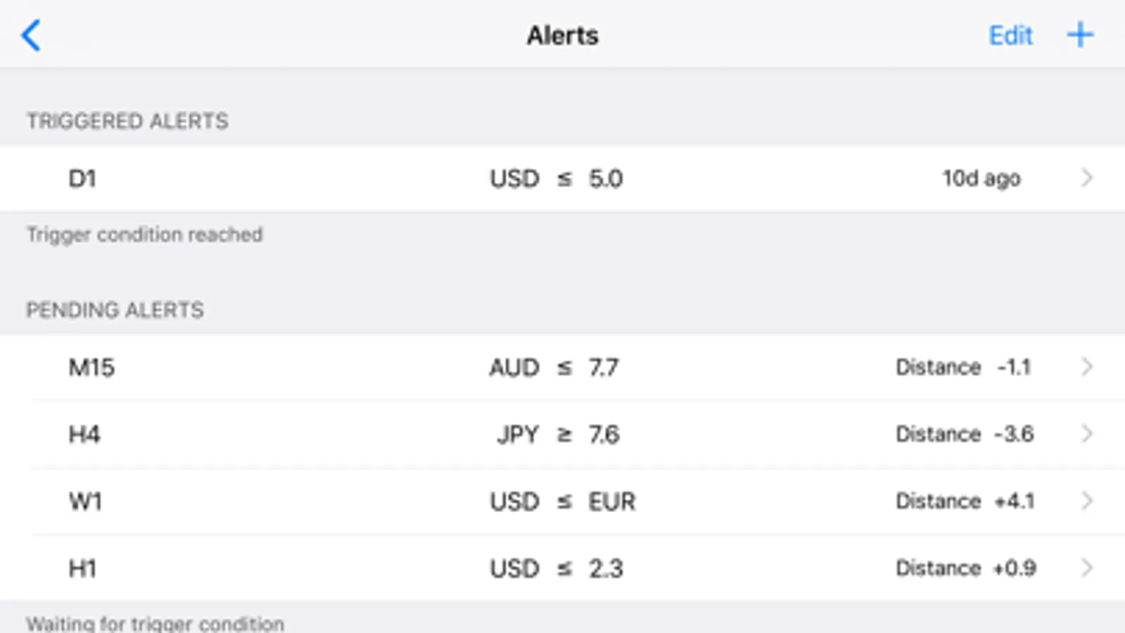 Alerts: trigger on an absolute value or cross for any currency or time-frame.