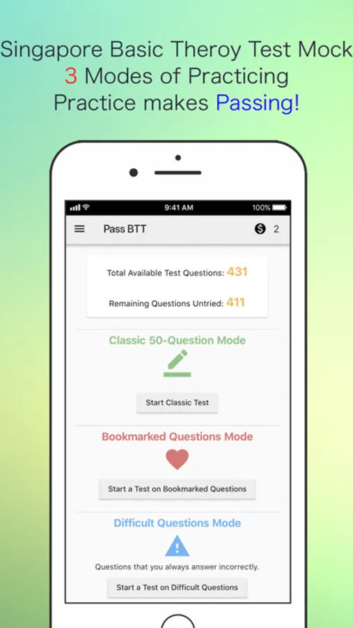 Pass BTT is the perfect App for early preparation or last minute revision. You do not need to read or take any courses about BTT. Simply install this app and get mock test started.
