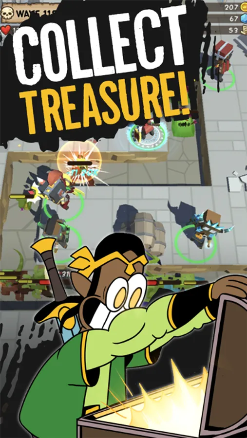 Your main goal in this Idle TD game is to use your heroes to stop the monsters from reaching the treasure at the end of the maze.