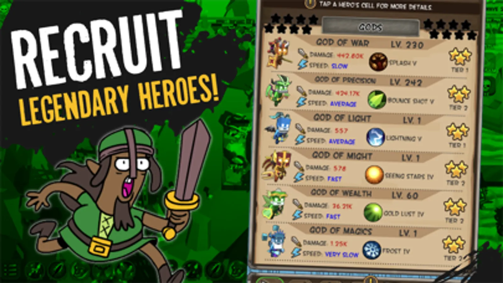 In this epic fantasy idle tower defense game, you must defeat monsters to earn resources, tap to unlock and upgrade heroes. Create a team of heroes and place them in strategic positions to defend against an endless swarm of vicious foes!