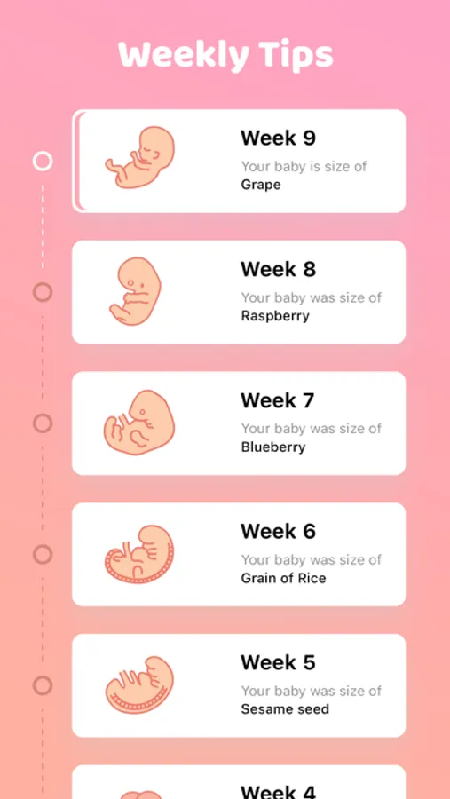 - Compare the growth of your baby to a beautifully illustrated fruit every week