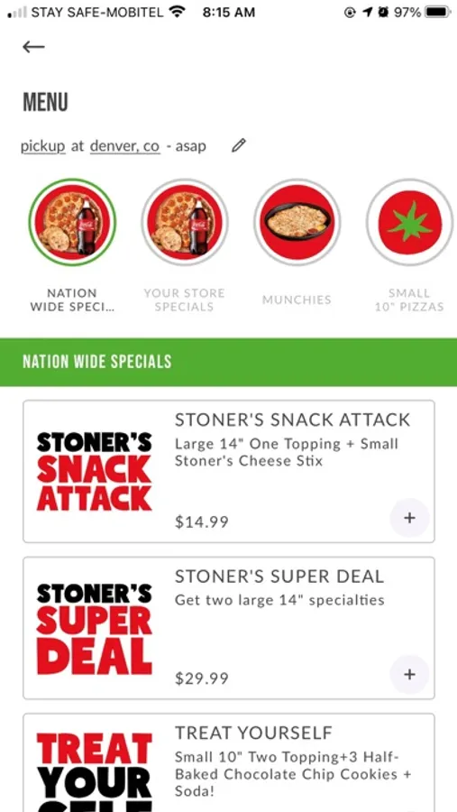 You never know when you need to satisfy a craving! No matter where you are, you can use the Store Locator feature to get directions, call in, or view your distance from the closest Stoner's Pizza Joint.