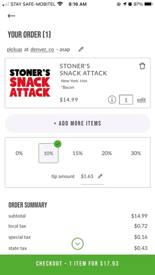 - Don’t want to wait while we make your grub? Order on the mobile app and we’ll have it ready to pick up when you arrive.