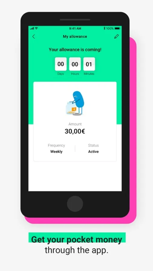 Your parents will be able to choose the amount of your pocket money and when you receive it. You will see in the app how many days there are left until your receive it.