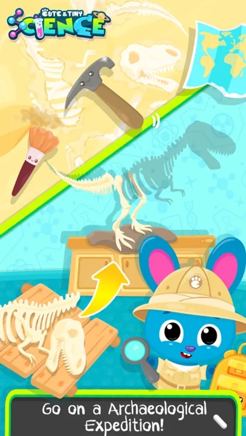 Bunny Blu loves dinosaurs! Go on a pretend play archaeological expedition! Be careful and clean up dinosaur bones! Match and collect the whole dinosaur skeleton - just like a puzzle!
