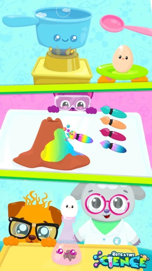 It’s so cool to be smart! Visit a science fair and help cute baby animals do fun lab experiments! Learn the basics of science: chemistry, biology, astronomy, physics and archaeology! Kitty Sue, puppy Bu, bunny Blu, panda Choo and piggy Lulu love science and lab experiments!