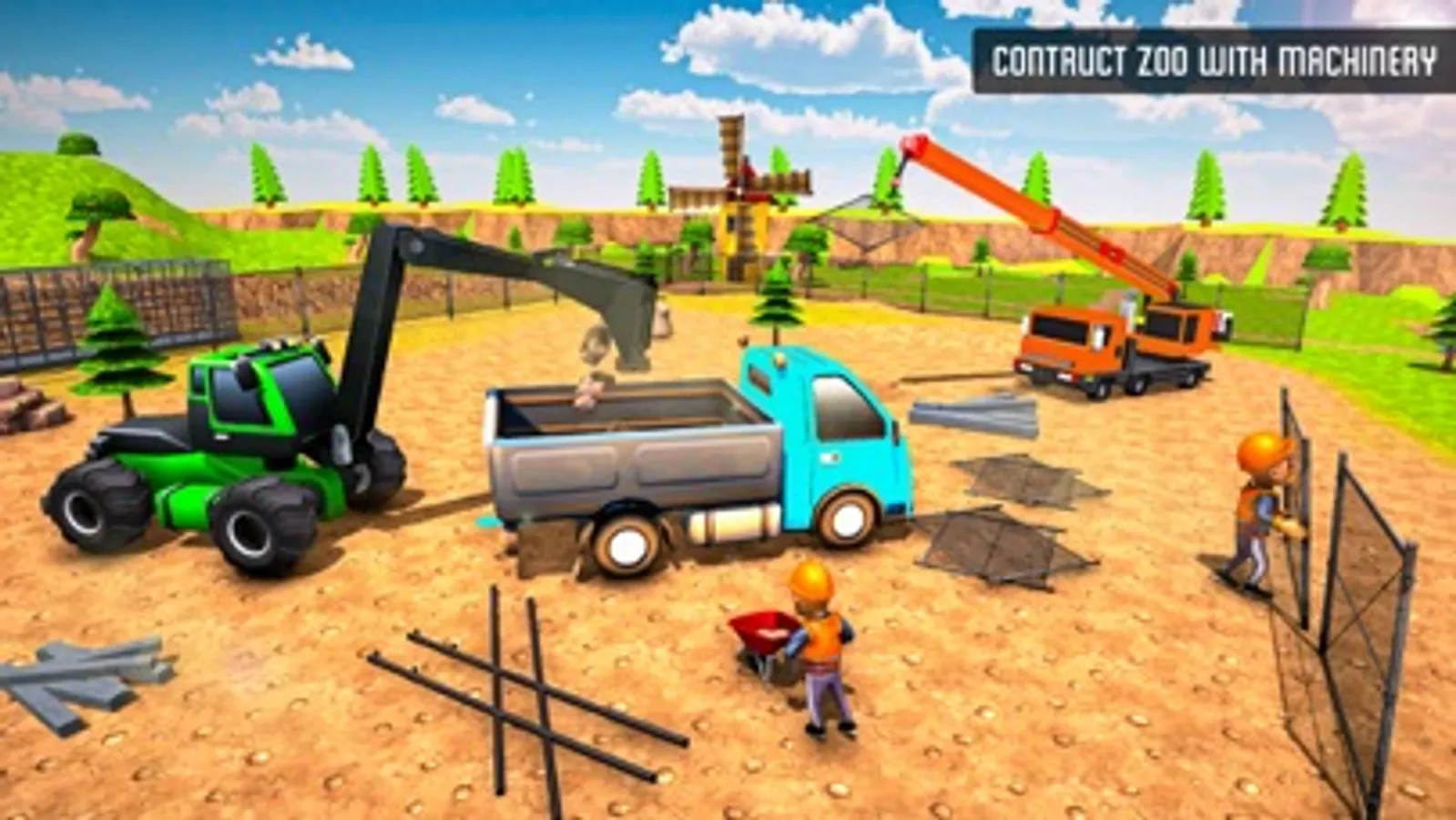 Welcome to Jurassic dinosaur zoo builder world, this game is for different thought of people who love to construct, hunt also driving vehicle for transport, carriage, staring from selecting land for zoo construction and using heaving machinery and man force to build it then drive your cruiser to visit to uphill mountain to gain idea where exact dinosaurs are living then take helicopter to uphill with cage, you have to drop the cage on exact position from upside at Dino to hunt, lift it to the heavy truck for transport purpose and finally take it to zoo.
