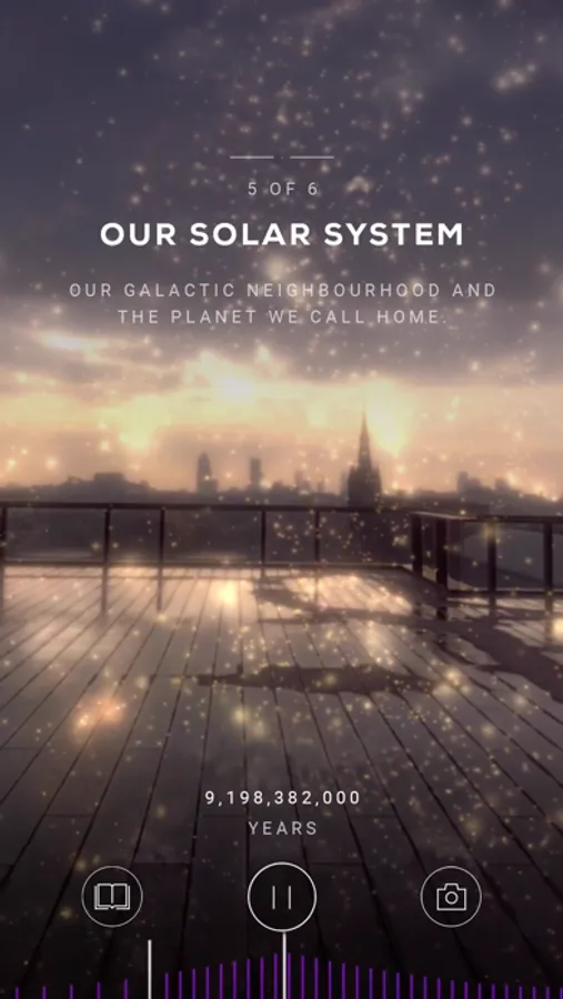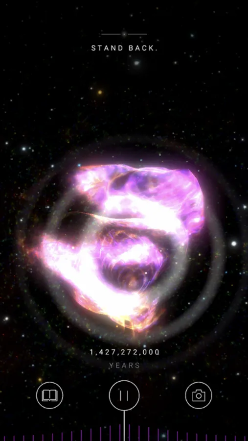 See the universe form in the palm of your hand. Witness the formation of the very first stars, our solar system, and the planet we call home. Immerse yourself in the primordial mystery of the early universe in space and watch events unfold around you, in your own physical environment.