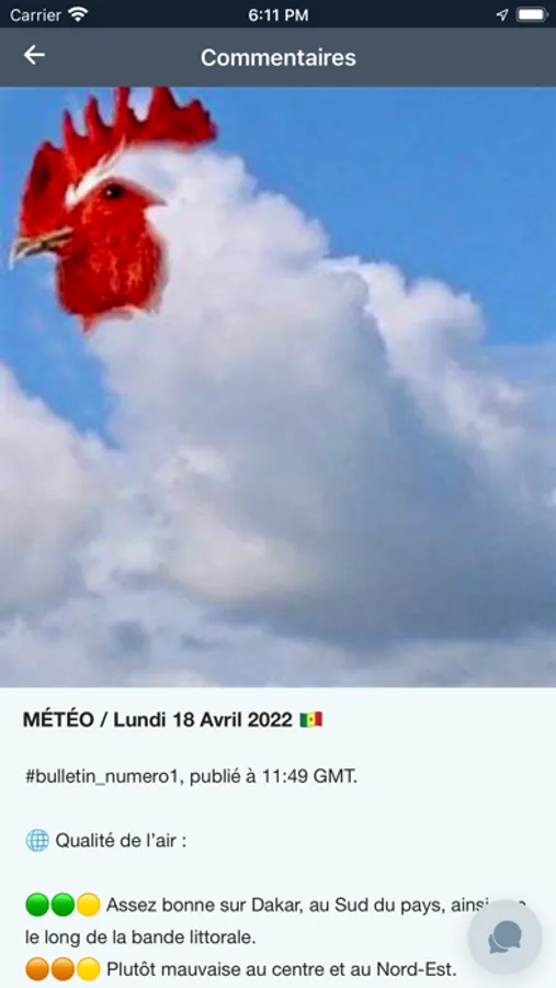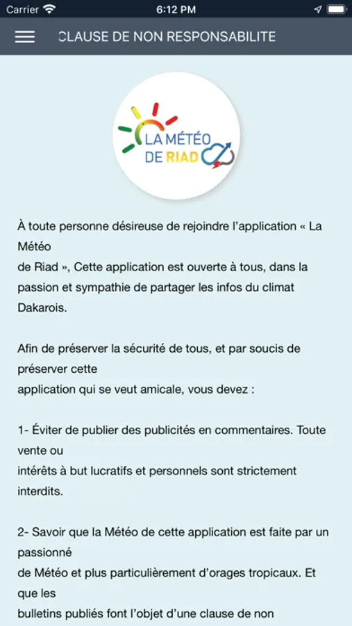 1- Vous y trouverez les prévisions les plus précises pour Dakar et 4 autres villes côtières du Sénégal, et serez rapidement informés en cas d’alerte météo (orage, pluie, vent fort, houle marine...). Une application riche en images, vidéos, et qui se veut proche de vous afin de vous garder connectés au temps, utilement !