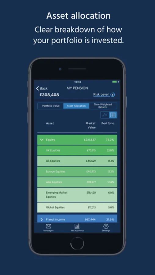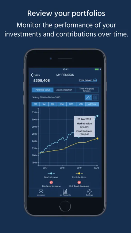 - Interactive view of portfolio value and contributions, with customisable timeframes