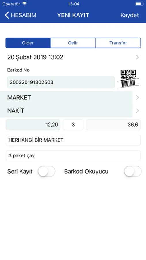 Gider veya gelir anında kayıt yapabilir ve unutkanlıklarınıza son verirsiniz.