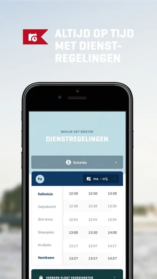 Daarnaast vind je in deze app informatie over het vaartraject, de tarieven en het laatste nieuws. Wij verwelkomen je graag aan boord.