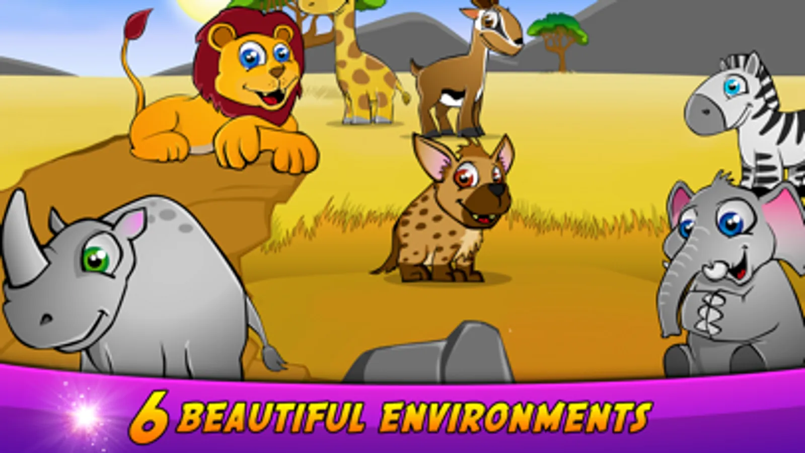 Learn: Click on the animal in each stage to hear it make a sound and hear its name.