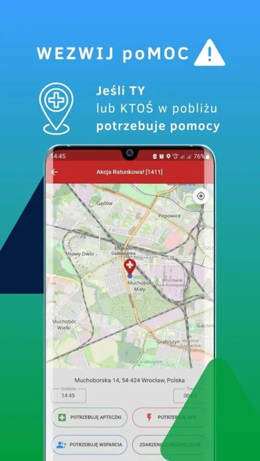 Z aplikacją Ratownik wezwiesz na pomoc wykwalifikowanych Ratowników, zlokalizujesz defibrylator automatyczny AED i pouczysz się pierwszej pomocy! Aplikacja dostępna jest dla każdego.