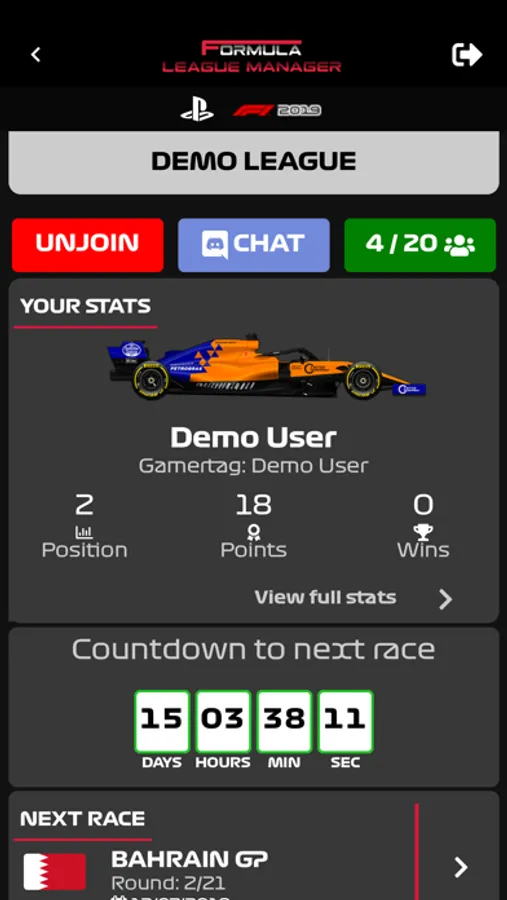 Formula eSport League Manager is an App where you can join and manage online leagues of Formula Game on PS4/Xbox/PC.