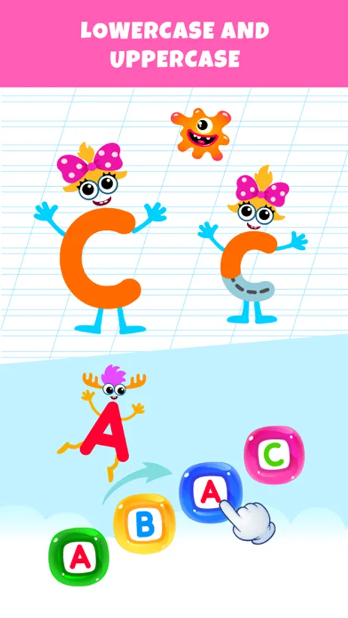 SuperAlphabet. Children are introduced to upper- & lower-case letters and the sounds corresponding to each letter. Fun tracing, bright bubbles, magic paint, jolly hide and seek and tag games will allow your child to learn letters and write them effortlessly.