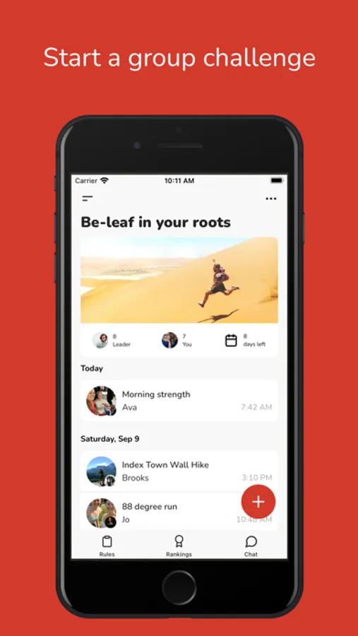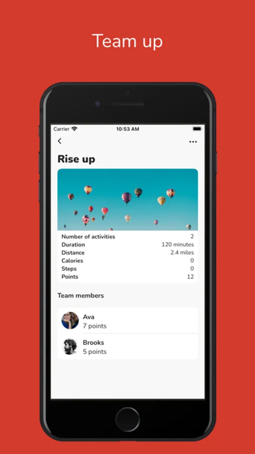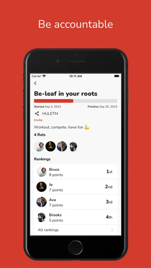The app is free form and allows for creating your own rules of competition. Score by total number of workouts, miles, minutes, calories, steps, or come up with your own point system. All that's required for a workout is a photo and a title. The photo can be of the gym equipment, a sweaty selfie, a screenshot of another app, or whatever your group deems acceptable.