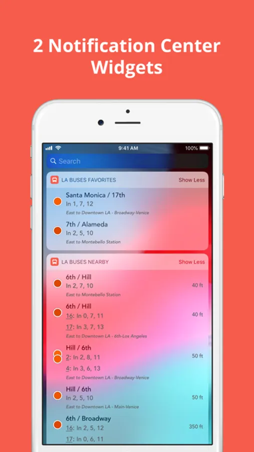 2 Notification Center widgets for easy access to time predictions for nearby stops as well as your favorites.