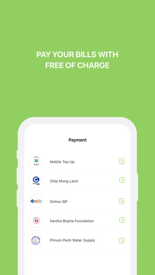• Bill Payments: Pay bills such as Mobile Top Up, Chip Mong Land, and PPWSA instantly and freely through our application.