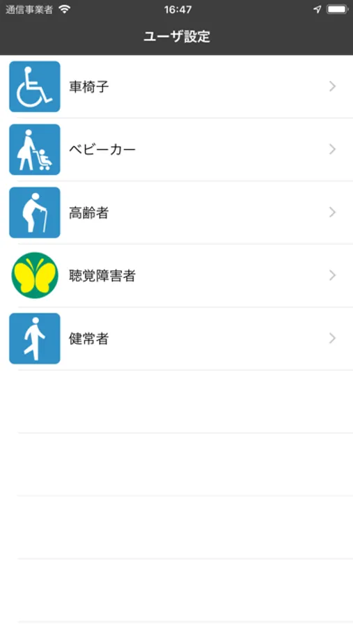 *** 従来までのバリアフリーナビ対象(車椅子の方向け、高齢者の方向け、ベビーカー向け、健常者向けのルート)に加え、視覚障害者、聴覚障碍者向けの機能を追加しました。 ***