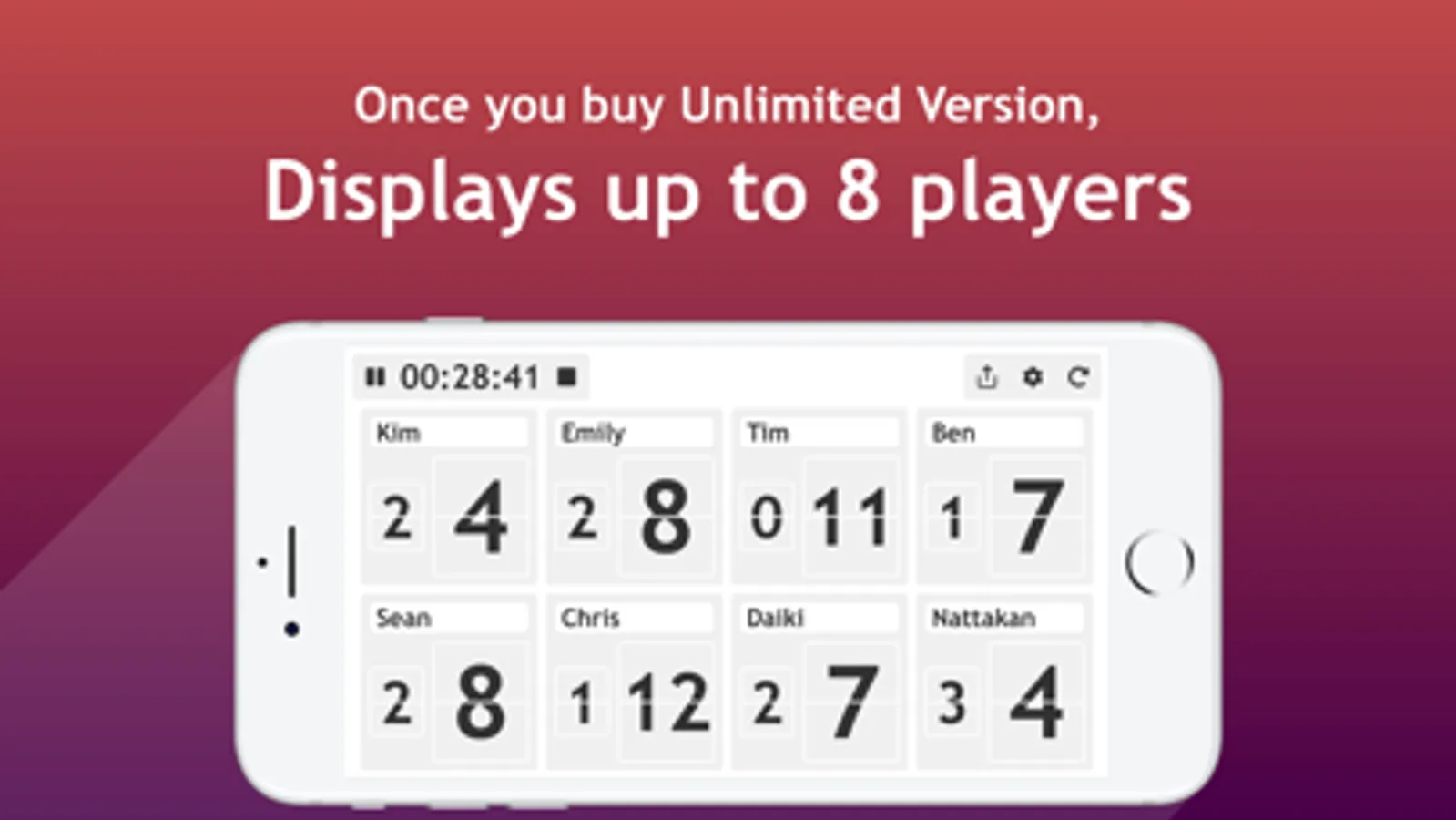 Simply tap to add/remove a point. Supports table tennis, board games, pool games, and other points-based games.