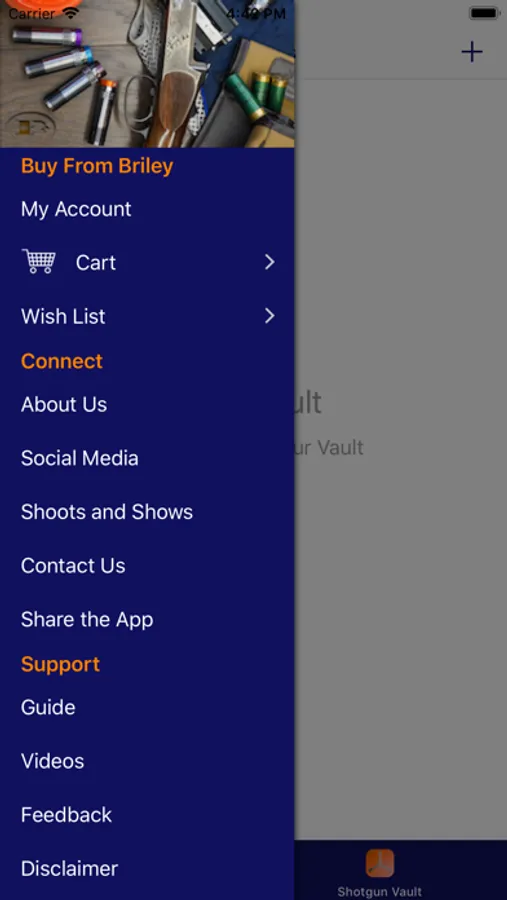 After entering firearm information into the Shotgun Vault, the user will see an add to cart icon appear on the main Choke Selection screen when they do not own a specifically recommended choke. From this add to cart icon, the user can painlessly order chokes to fill in their set through the Briley Best Shot App.