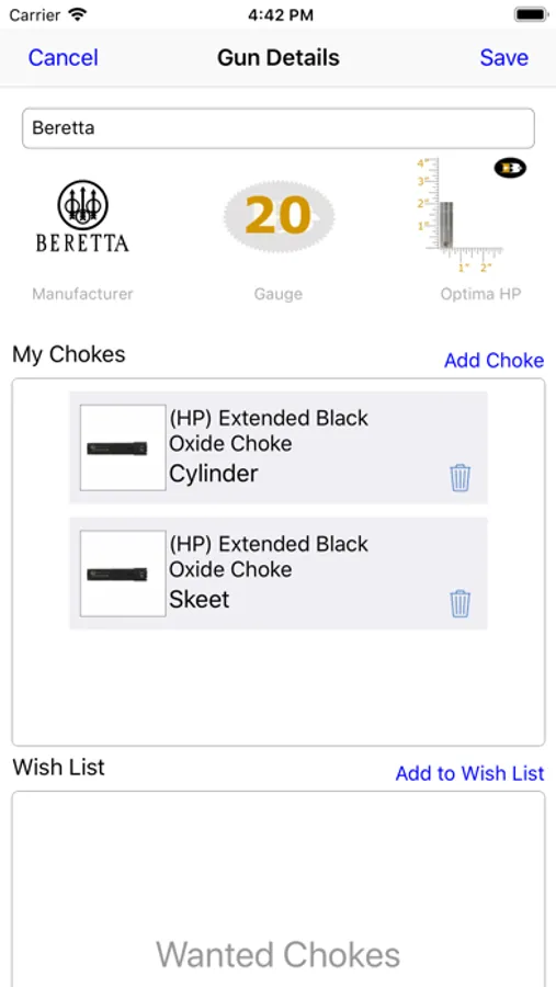 In addition to the choke and lead recommendations this app has a Shotgun Vault which allows the users to catalog their firearms and the chokes they already have for them. There is also a feature within the vault where the user can store notes about each firearm such as bore sizes, serial numbers, and any other notes the user wishes to save. All of this information is securely stored within the cloud, only accessible to you. This can be a very helpful feature to save notes about the user’s favorite firearms.