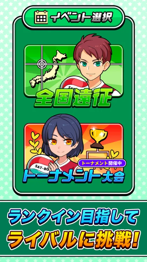 「全国遠征」全国の強豪校たちとバトル、一週間での勝敗数などを競うぞ!