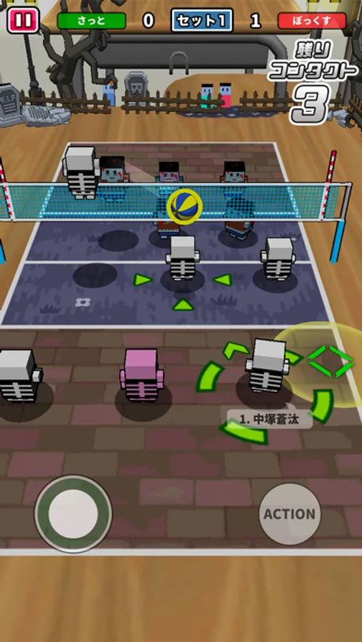 右手・・・仮想ボタンでレシーブ、トス、アタック