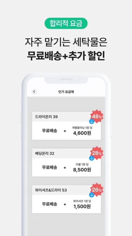 - 월정액 서비스: 자주 맡기는 세탁물은 할인+무료배송
