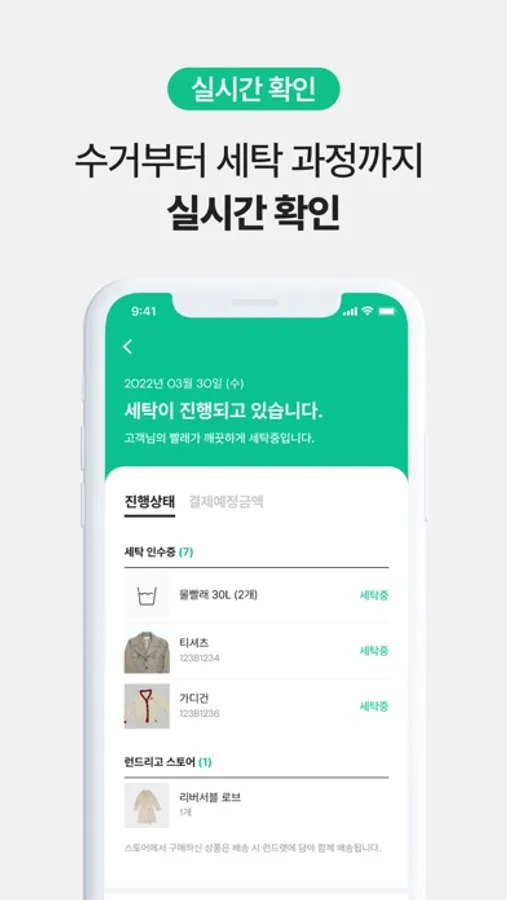 신청한 세탁 진행 상황을 실시간으로 확인하세요.