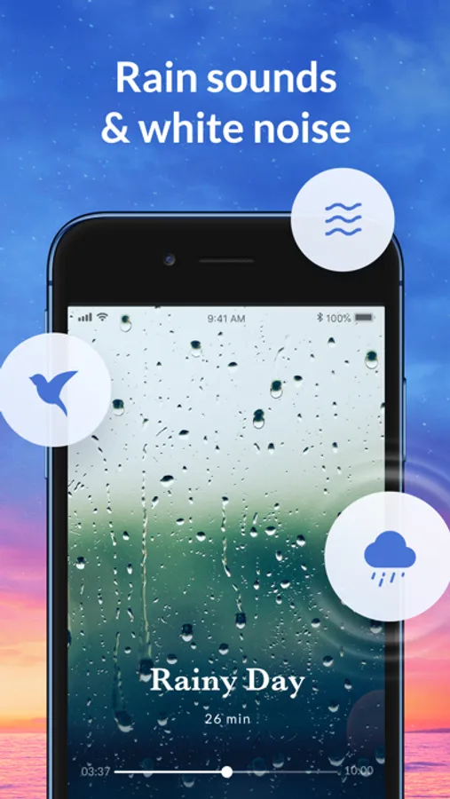 With Sleep, you can relax anytime and anywhere. Relax and sleep all night long with the help of white noise and soothing sleep sounds!