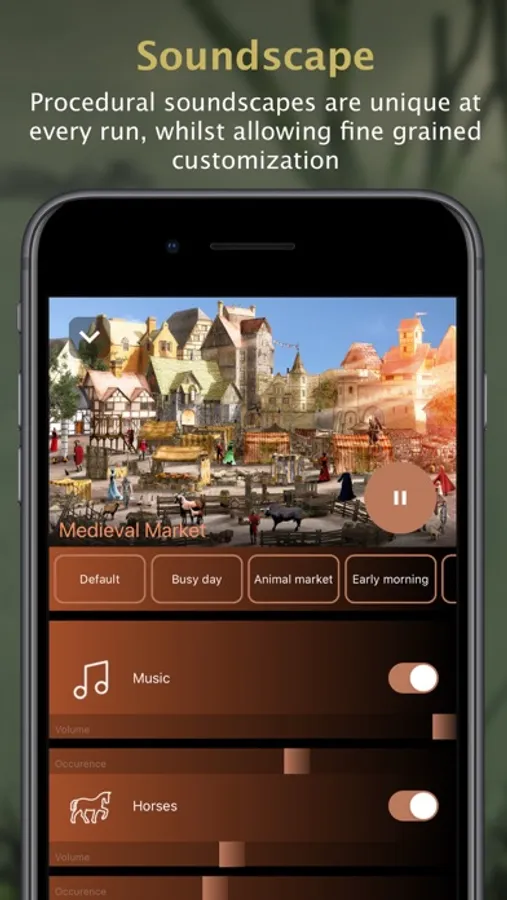 On top of that our soundscape apps use a unique and simple to use occurrence slider to let you decide how often a specific bird, monster or any other sound is used in the preset. Still it's totally unpredictable when a specific sound is being heard therefore producing an amazingly random natural sound experience.