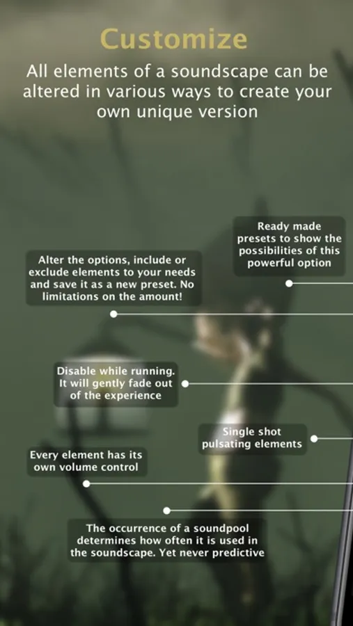 Our unique node based soundscape engine, which is behind the beautiful designed and intuitive user interface uses techniques which are used by top game designers and audio engineers to mimic nature's way and randomness.