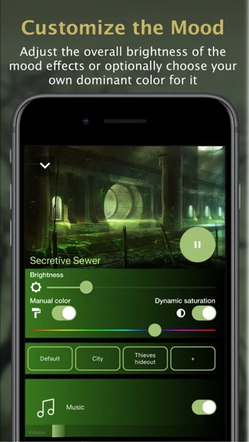 RPG Sounds Fantasy Worlds is an ever growing collection of generative procedural RPG Fantasy Worlds Soundscapes with optional light scripts and light effects when connected to Philips Hue or IKEA® TRÅDFRI. (Also works without lights).