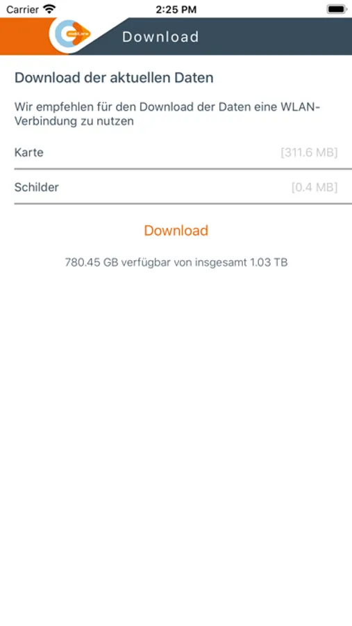 - "Externer Speicher" - Zum Zwischenspeichern der Offline-Karte und der Bilder von Schildern und Aufstellvorrichtungen