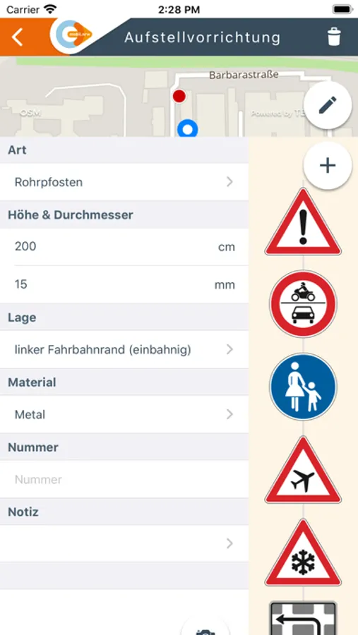- "Kamera" - Zum Fotografieren von Schildern und Aufstellvorrichtungen