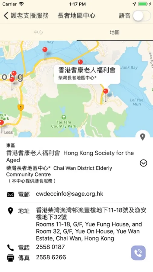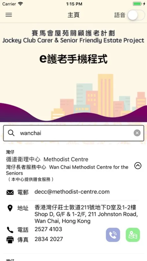 語音及位置功能:只要申請長期照顧服務者在居所附近讀出【長者地區中心】或【長者鄰舍中心】,便可直接以電話連繫就近申請中心,方便怏捷。