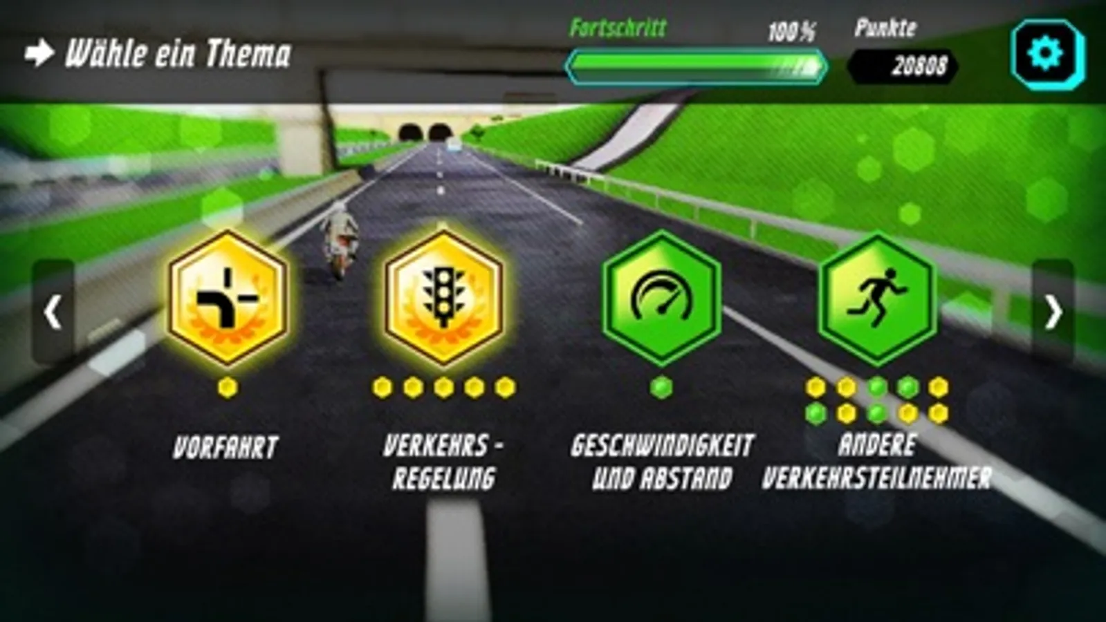 Wie reagierst du auf Rehe am Fahrbahn-Rand? Was tust du, wenn ein Krankenwagen hinter dir auftaucht? Welche Gefahren lauern an Haltestellen? Spiel dich durch 32 kurze Level und finde es heraus! Sammle Punkte, knack den Highscore und du bist bestens vorbereitet für die Führerschein-Prüfung und die Fahrpraxis.
