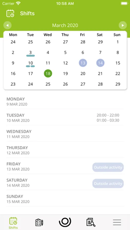 Tendrás tus asignaciones con dos tipos de vista: semanal o mensual. Además, podrás navegar entre las fechas del calendario o acceder a una fecha en concreto.