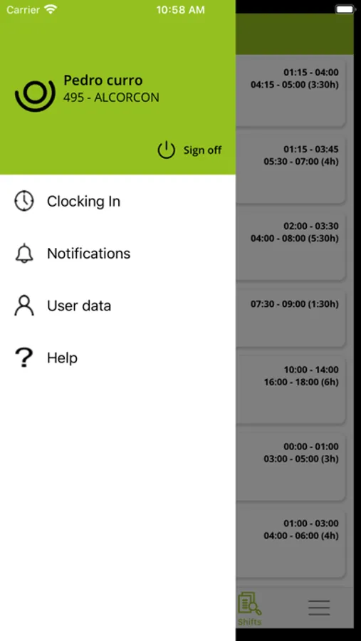 Podrás acceder a tus fichajes y fichar rápidamente desde la App. Para ello, accede desde el menú lateral y podrás ver, además, los comentarios de otras fechas.