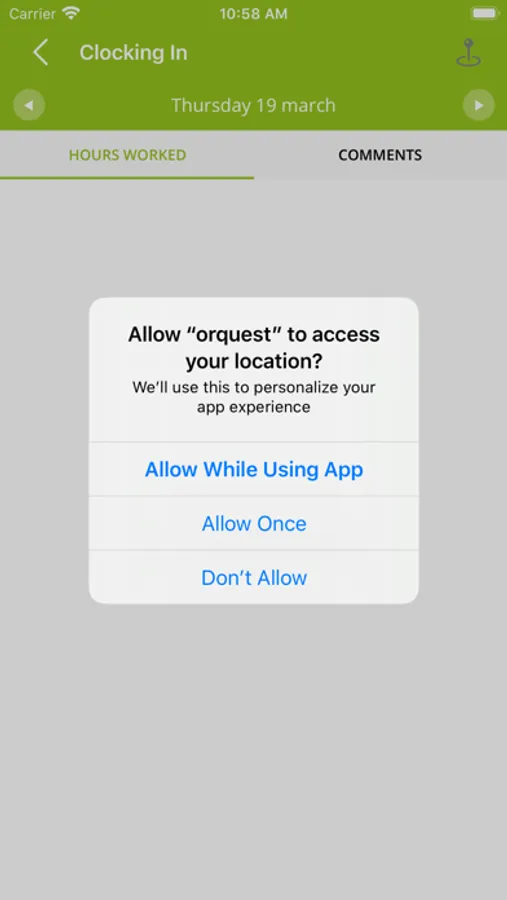 (Para dotar de toda la funcionalidad a los fichajes, tendrás que aceptar los permisos de localización desde la App. De esta manera, podrás geolocalizarte fácilmente en el mapa y confirmar tu posición).