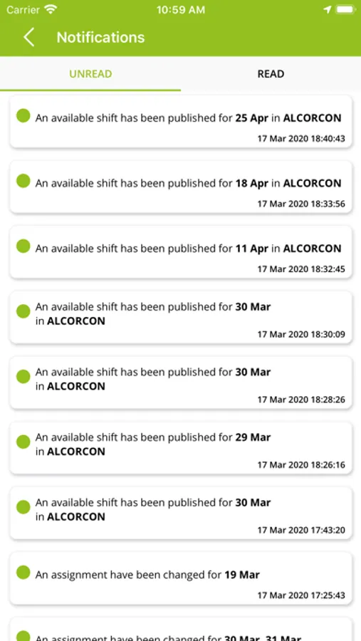 Desde la App podrás gestionar y visualizar, con mucha facilidad, las ofertas de turnos vacantes.