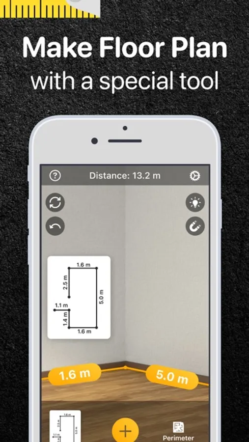 - Rangefinder – measure the distance from your smartphone's camera to any point in view