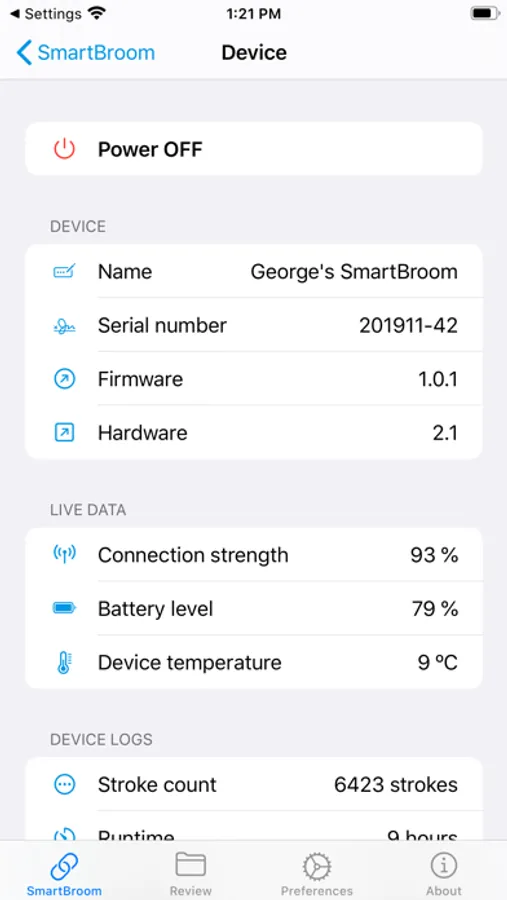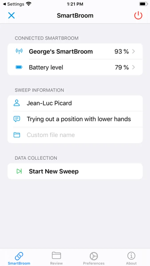 The SmartBroom app wirelessly connects to your SmartBroom: TNG device (order yours at http://SmartBroom.ca), enabling you to collect and review data.