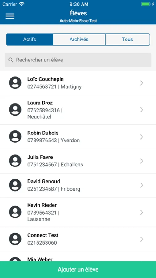 - Tableau de bord (statistiques concernant les paiements et les leçons effectuées)